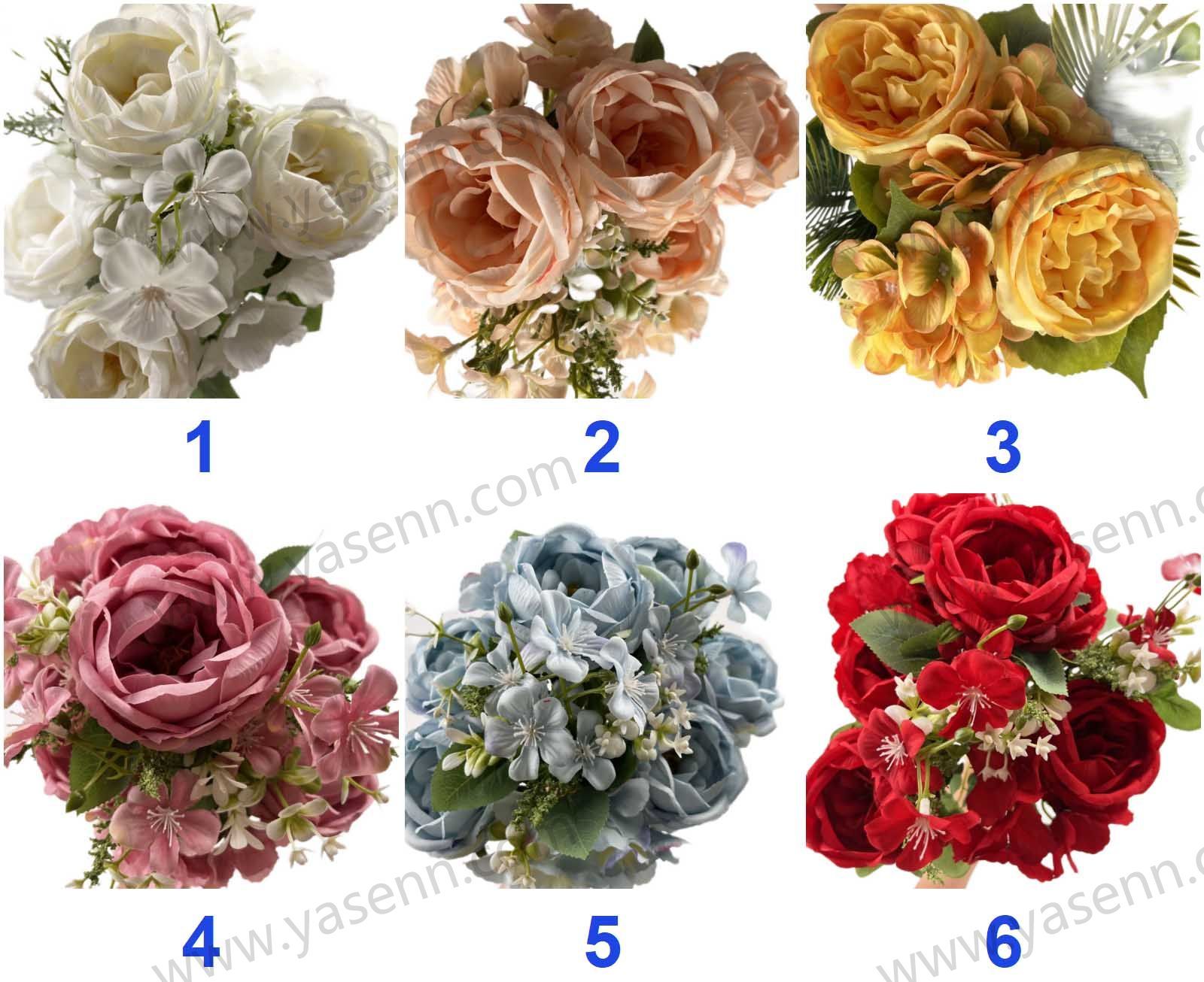 Description:HEIGHT 50CM/11 BRANCHES/6 ROSE 2 HYDRANGEA 3 MISCELLANEOUS FLOWERS/DIA 9CM 12CM 4.5CM/NUMBER OF LAYERS 10 1 1/PONGEE/11PCS LEAVES