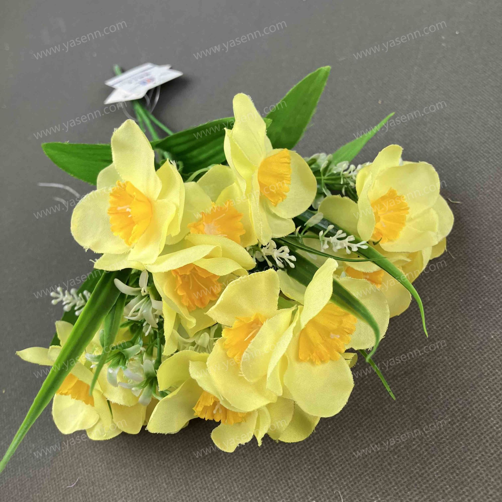 HEIGHT 38CM/5 BRAMCHES/20 DAFFODIL/DIA 6CM/NUMBER OF LAYERS 3/PONGEE/4PCS LEAVES