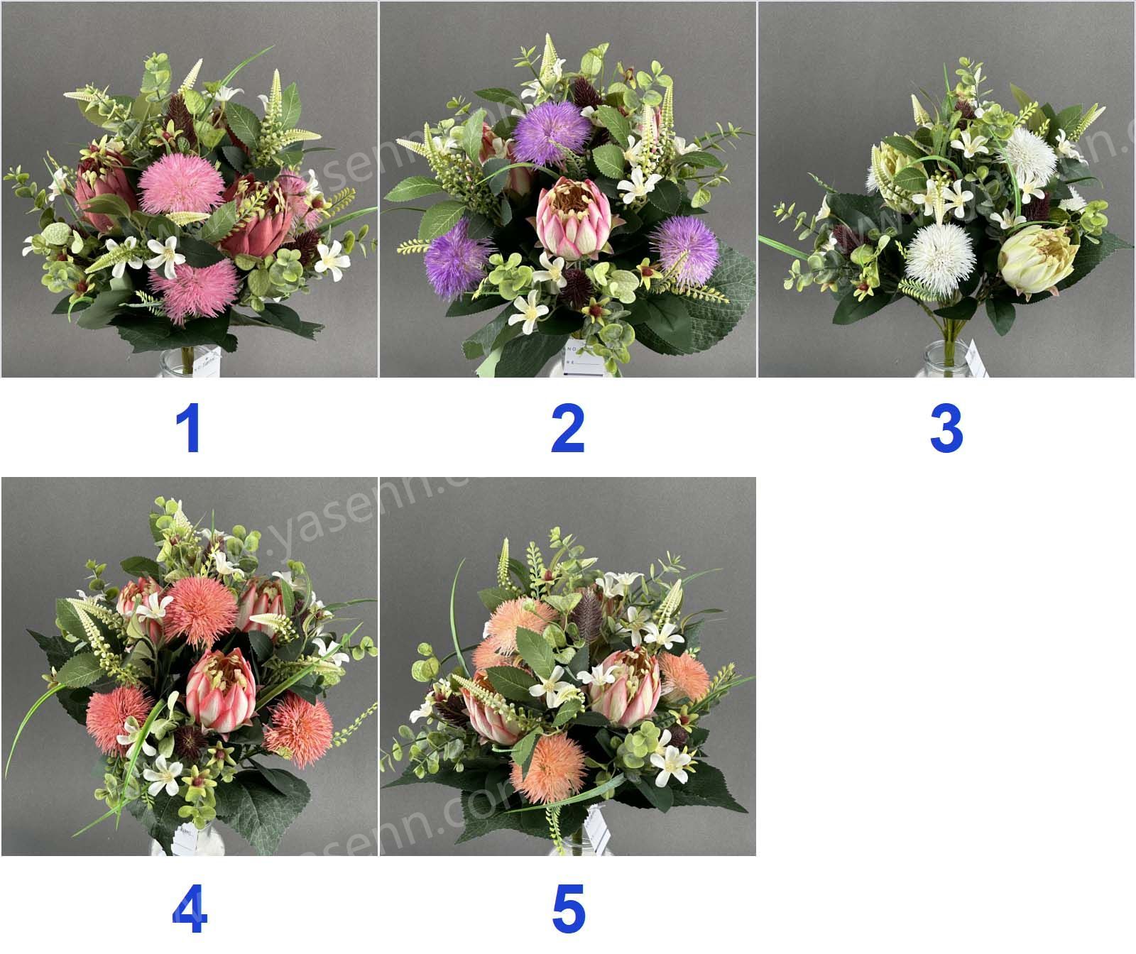 Description:HEIGHT 43CM/14 DANDELION/3 PROTEA 4 DANDELION 7PCS FITTINGS/DIA 6CM 7.5CM/3 LAYERS 4LAYERS/PONGEE PLASTIC/5 LARGE LEAVES 14 THREE EARED LEAVES 3 PAIRS OF LEAVES