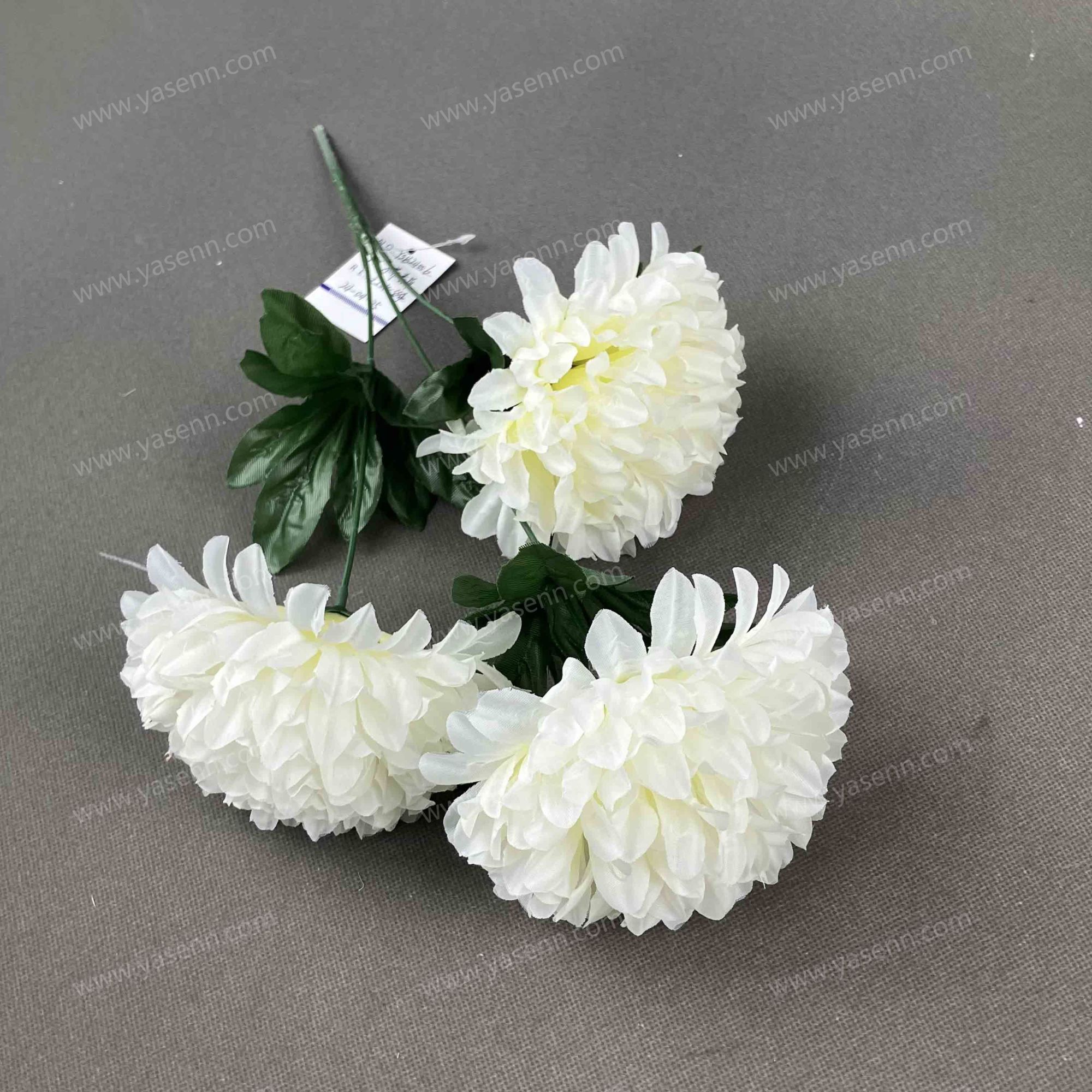 Description:HEIGHT 32CM/3 BRANCHES CHRYSANTHEMUM/3PCS FLOWERS/DIA 14CM/ 6 LAYERS/TAFFETA/3 PCS LEAVES