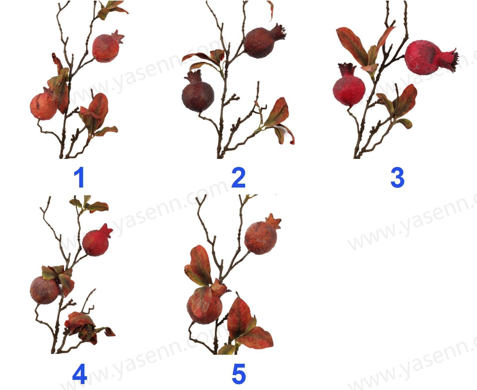 Description:HEIGHT 95CM/2 BRANCHES POMEGRANATE/3PCS BIG FRUITS 3PCS SMALL FRUITS/DIA 4CM 3.5CM/FOAM/6PCS LEAVES