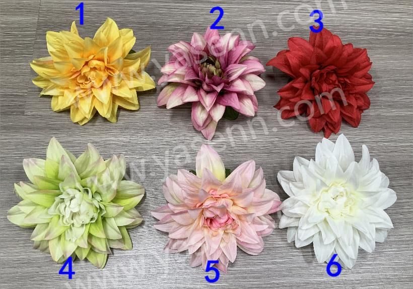Description:HEIGHT 50CM/12 BRANCHES DAHLIA /5DAHLIA 9Cone 4PCS FITTINGS/DIA 12CM /11 LAYERS/ PONGEE/9 PCS LEAVES