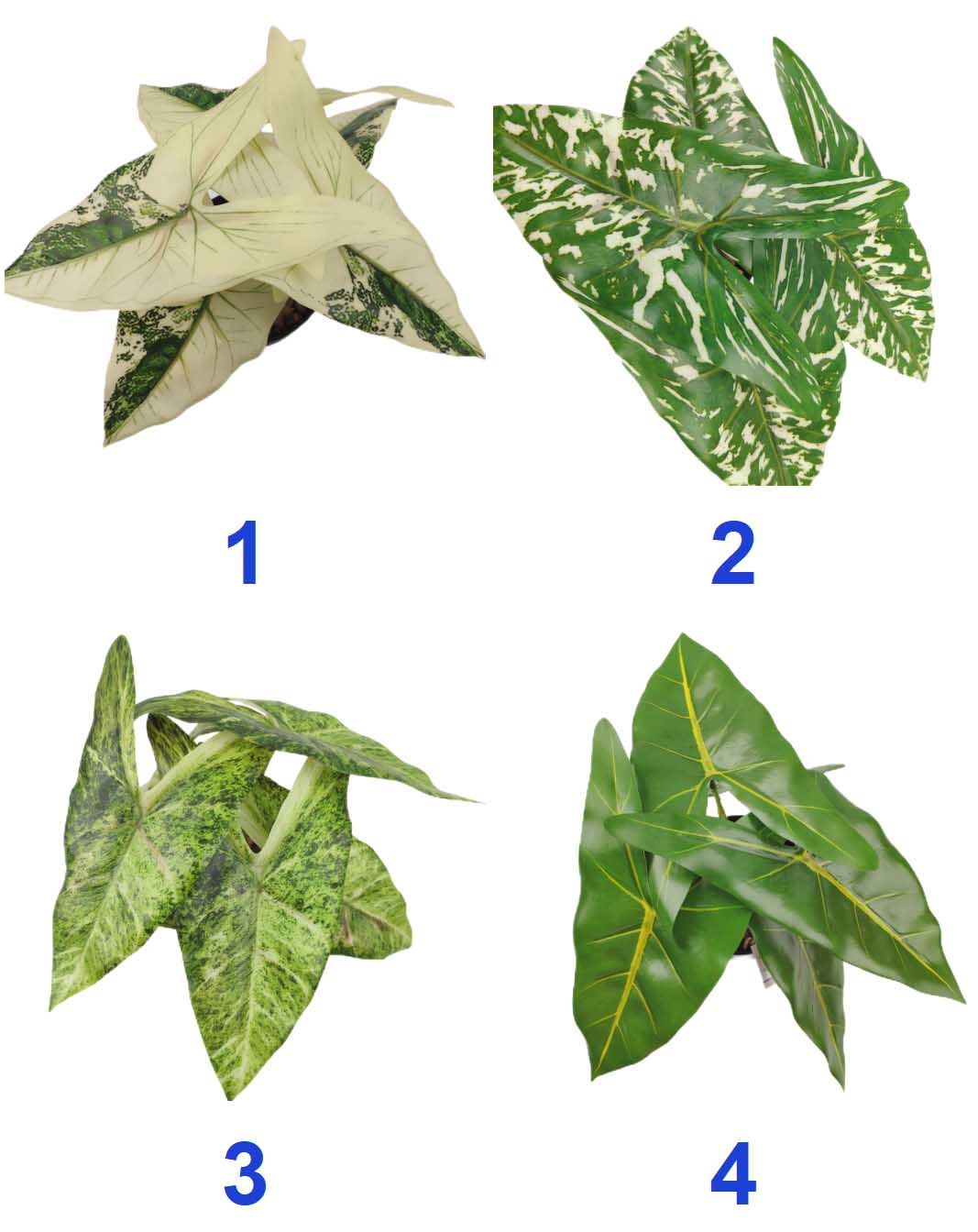 Packing Inf.:HEIGHT 24CM/CALADIUM BICOLOR BONSAI/5PCS LEAVES/RUBBERIZED FABRIC/PLASTICS/309G YSM23148