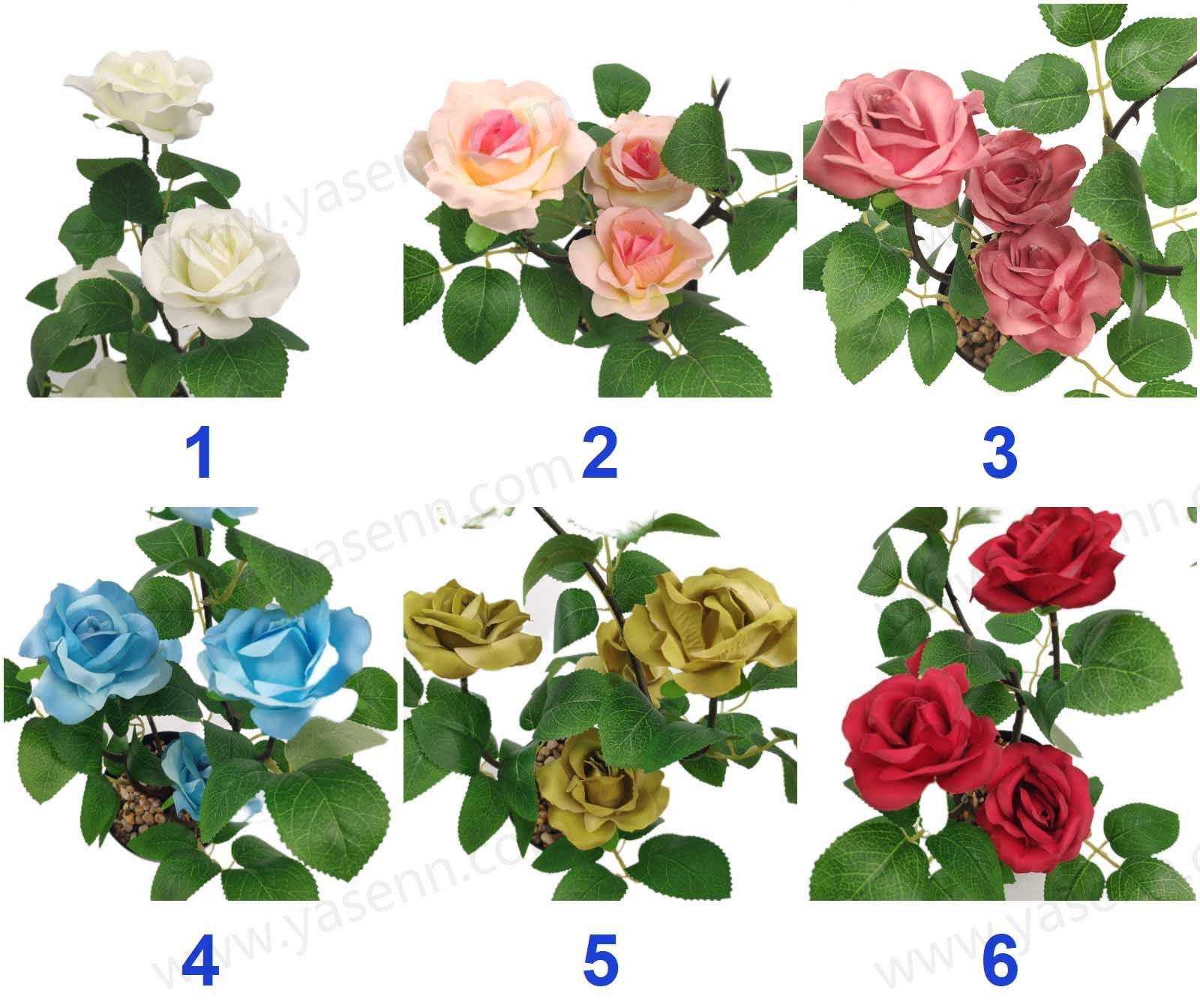 Packing Inf.:HEIGHT 32CM/ROSE BONSAI/5PCS FLOWERS/6 LAYERS/DIA 7CM/10PCS LEAVES/WOOLEN/PLASTICS/190G YSM23099