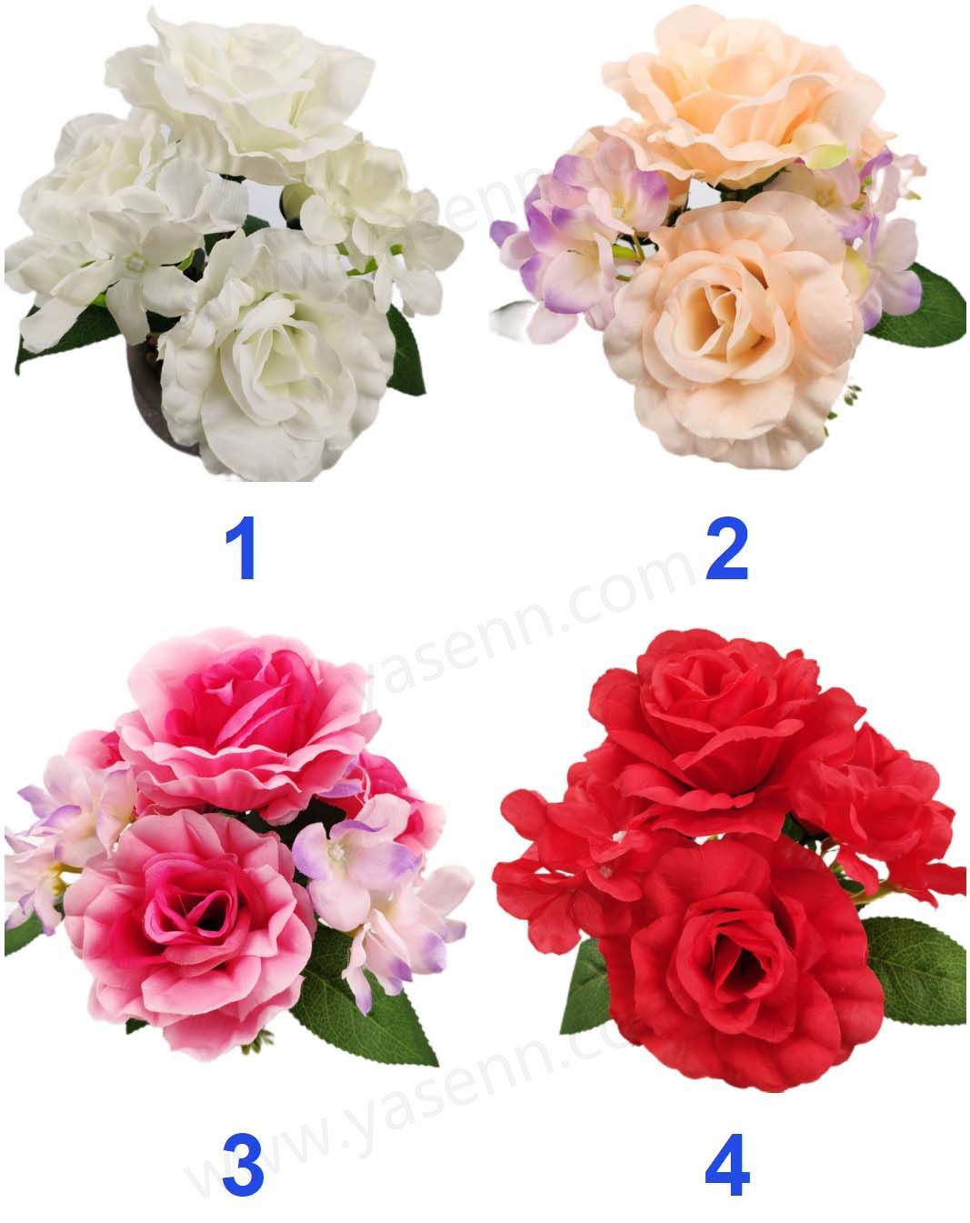 HEIGHT 24CM/ROSE HYDRANGEA BONSAI/4 ROSE 3 HYDRANGEA 3 FITTINGS/6 1 LAYERS/DIA 8CM 7CM/3PCS TRI-LEAF/PONGEE/FOAM/256G YSM23102