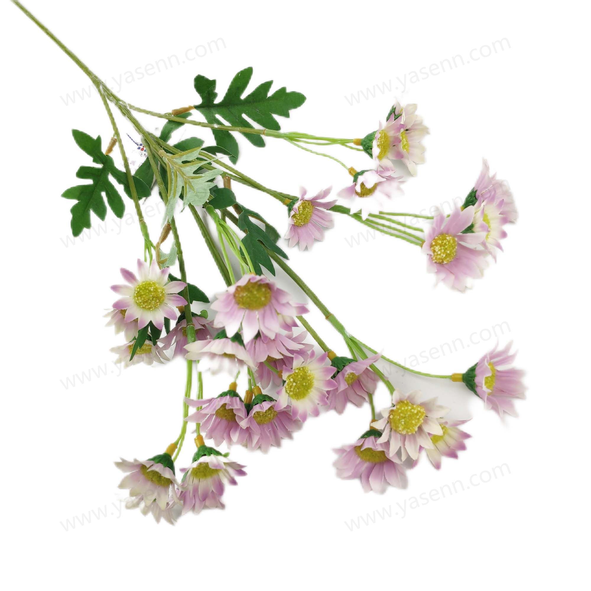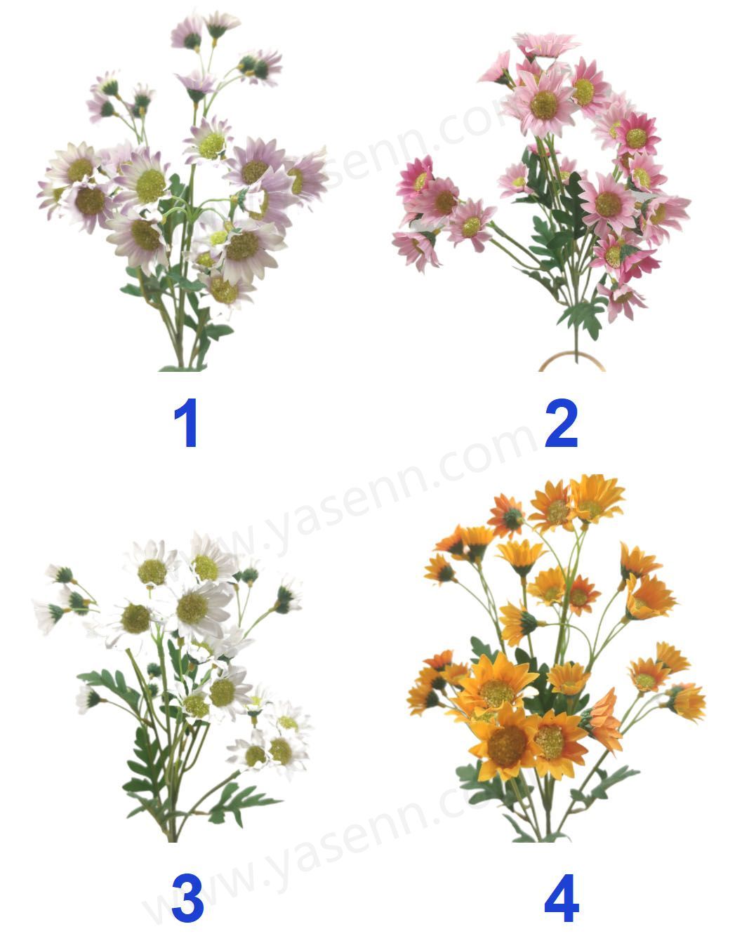 HEIGHT 60CM/4 BRANCHES DAISY/17PCS BIG FLOWERS 14PCS SMALL FLOWERS/DIA 3.5CM 2.5CM/1 LAYERS/PONGEE/6PCS LEAVES