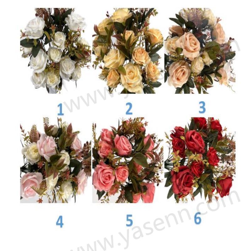 Description:HEIGHT 50CM / 18 BRANCHES / 12 ROSE 6 FITTINGS / DIA 7CM / FLOCKED PONGEE / 12PCS LEAVES