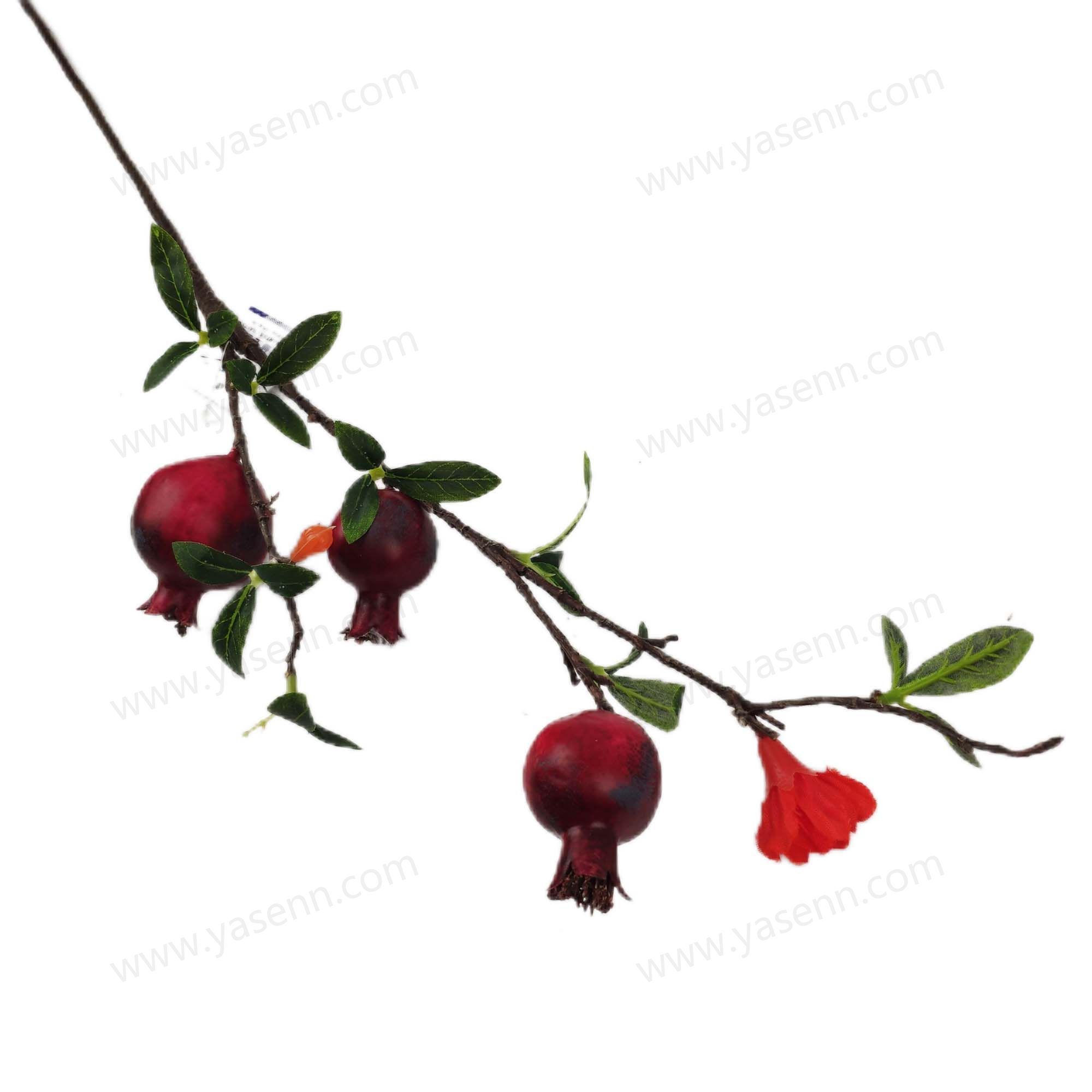 HEIGHT 70CM/2 BRANCHES POMEGRANATE/1PCS BIG FRUIT 2PCS SMALL FRUITS 1PCS FLOWER 1PCS FITTINGS/DIA 5CM 3.5CM FLOWERS:3.5CM/2 LAYERS/7PCS LEAVES/FOAM
